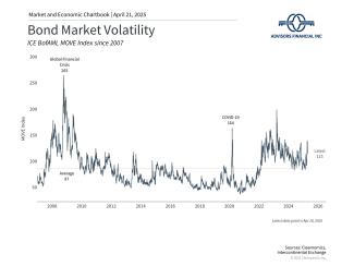 Municipal bonds have also experienced greater volatility recently. The muni ratio, which compares municipal bond yields to Treasury yields, increased following the tariff announcement and continues to remain elevated. This higher ratio indicates that municipal bonds present greater relative value compared to Treasurys today, especially for investors in higher tax brackets and high-tax states.